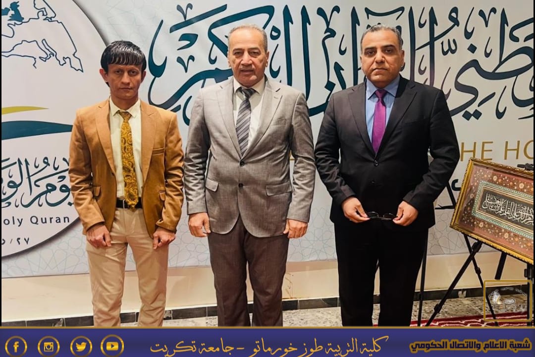 شارك الأستاذ الدكتور نهاد علي شفيق، عميد كلية التربية طوز خورماتو، يرافقه كلٌّ من الدكتور وعد دليان أنور والدكتور إبراهيم علي سليمان، في الحفل المركزي الذي أُقيم بمناسبة اليوم الوطني للقرآن الكريم، وذلك في قاعة الشهيد الحكيم بجامعة بغداد، بتاريخ اليوم السبت الموافق ٢٠٢٦/١/١٧.