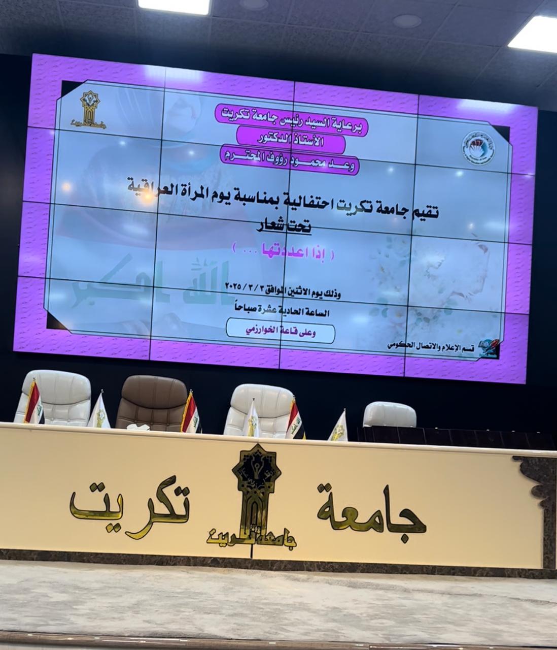 برعاية رئيس جامعة تكريت الأستاذ الدكتور وعد محمود رؤوف، وبحضور الأستاذ الدكتور حسن حسين إبراهيم، مساعد رئيس الجامعة للشؤون العلمية، وبدعم من عميد كلية التربية طوز خورماتو الأستاذ الدكتور نهاد علي شفيق، شاركت كليتنا في الحفل المركزي الذي أقامته جامعة تكريت اليوم الموافق 3 آذار 2025 بمناسبة اليوم الوطني للمرأة العراقية، وذلك في قاعة الخوارزمي، بحضور نخبة من الشخصيات الأكاديمية والإدارية.