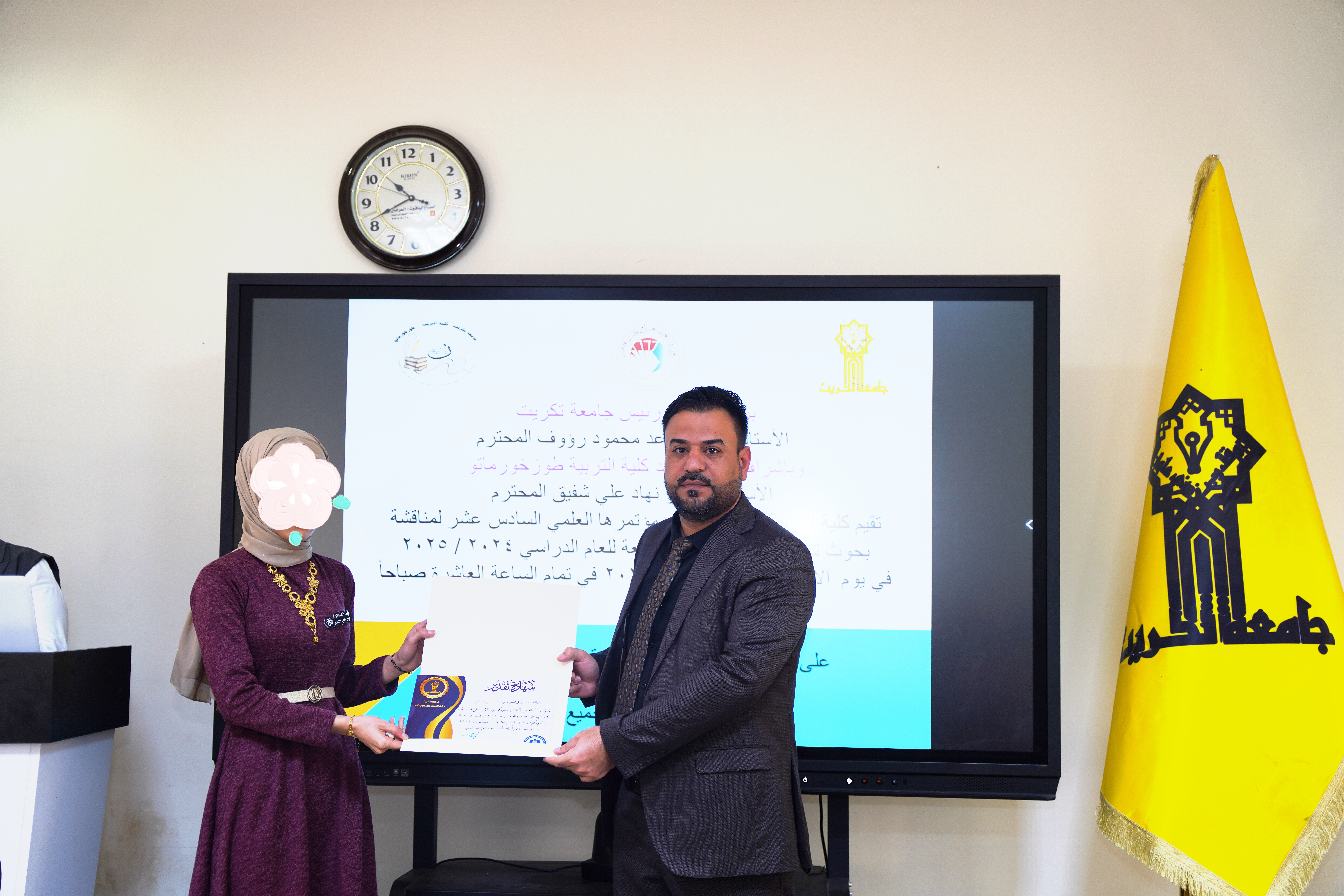 وشهد الحفل حضور الأستاذ الدكتور نهاد علي شفيق، عميد الكلية، إلى جانب الدكتور إبراهيم صالح أحمد، المعاون الإداري، والدكتور علي أكرم موسى، المعاون العلمي، بالإضافة إلى رؤساء الأقسام العلمية، وأعضاء الهيئة التدريسية، وجمع من طلبة الكلية.