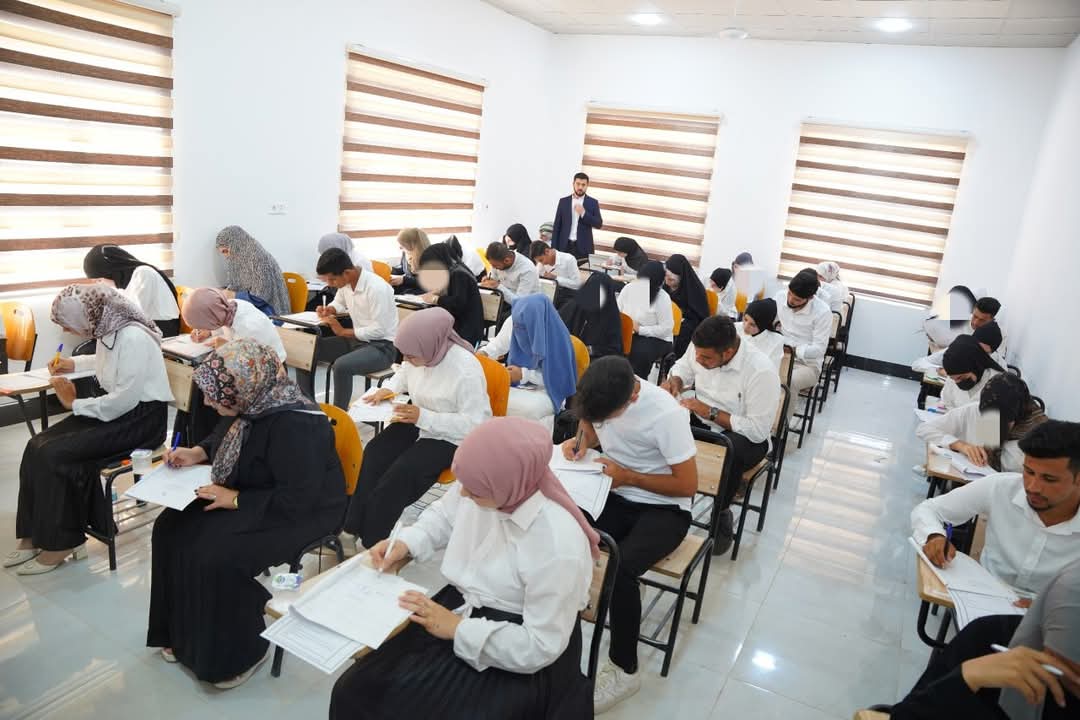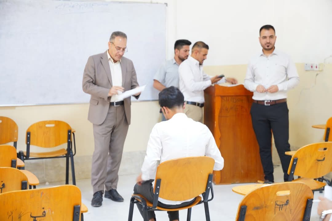 وتفقد السيد العميد عددًا من القاعات الامتحانية، واطلع على انسيابية أداء الطلبة، وتوفّر الأجواء المناسبة التي تعزز من قدرتهم على أداء امتحاناتهم بكفاءة وارتياح. كما أثنى سيادته على الجهود المبذولة من قبل اللجان الامتحانية، مشيدًا بالتعاون والتنسيق العالي بين الملاكات التدريسية والإدارية، والذي يسهم في ضمان نجاح الامتحانات وتحقيق معايير الجودة والشفافية المعتمدة.