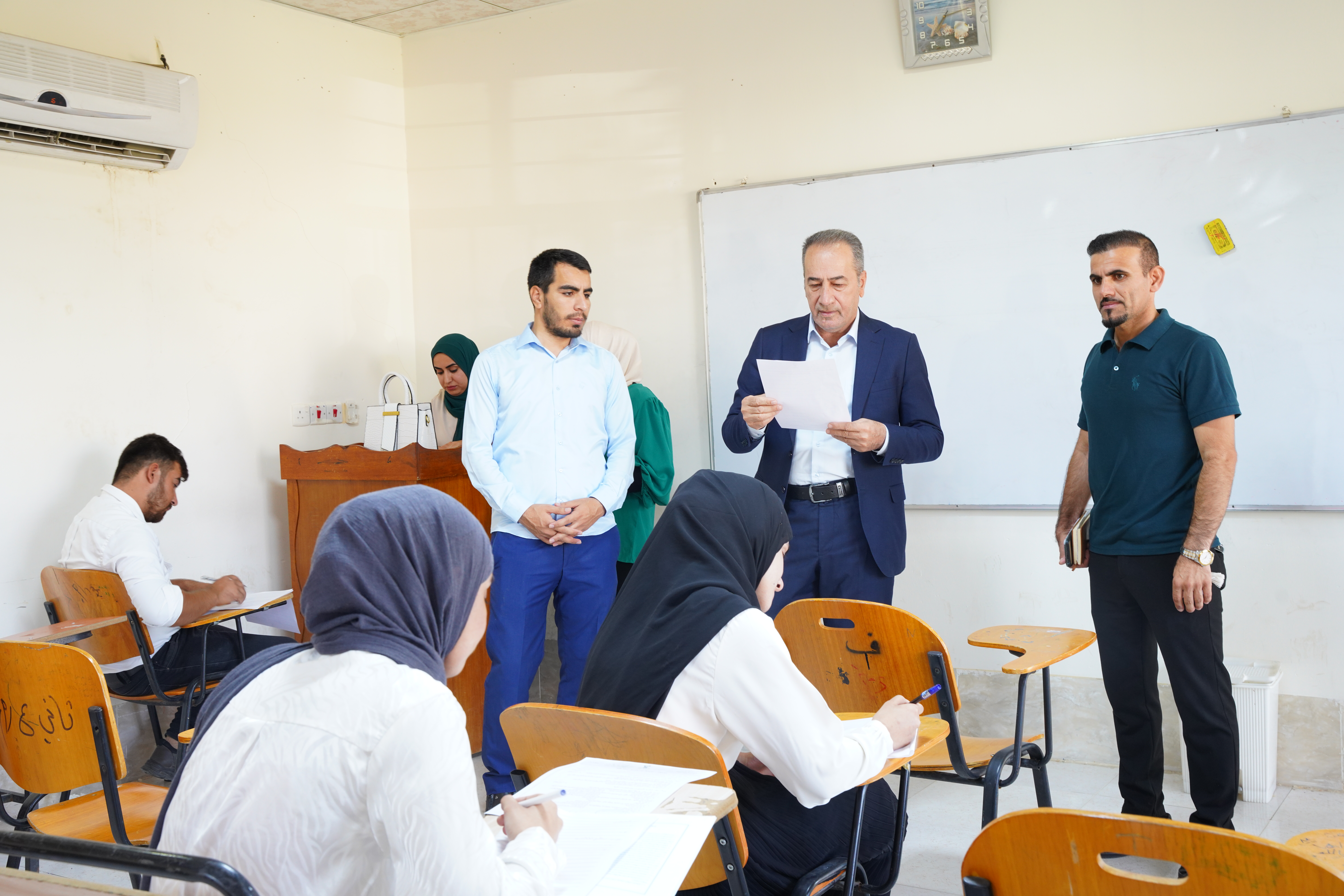 أجرت اللجنة، التي مثلها الدكتور حاتم، جولة ميدانية في القاعات الدراسية برفقة عميد الكلية الأستاذ الدكتور نهاد علي شفيق والمعاون العلمي الدكتور بسام إبراهيم علي. شملت الجولة متابعة الأجواء الامتحانية، والاطلاع على طبيعة الأسئلة الامتحانية ومدى شموليتها للمفردات الدراسية، فضلاً عن التحقق من عمل اللجان الامتحانية ومدى التزامها بالتعليمات الوزارية.